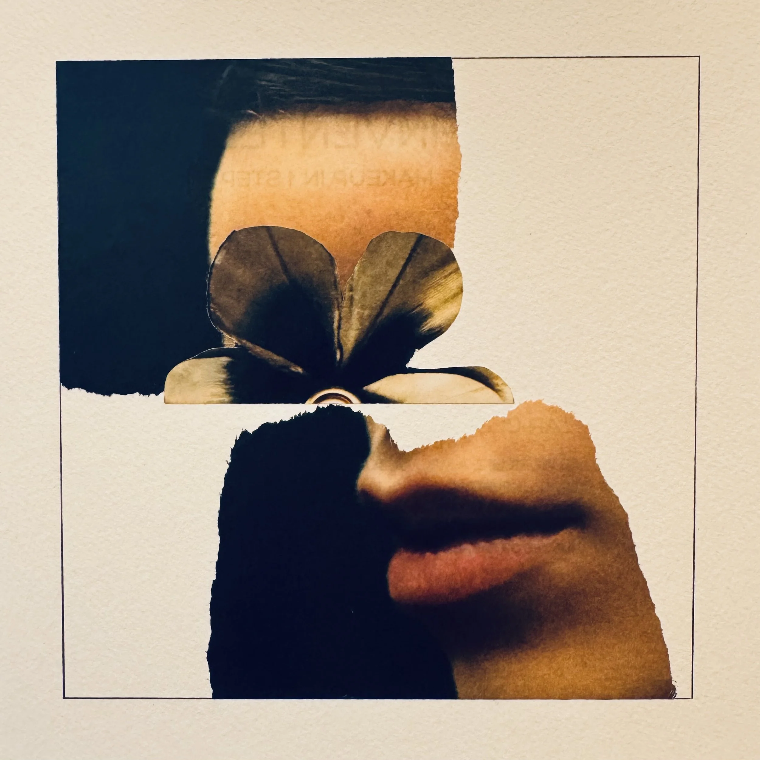 Collage by Heather Polk, “What is Taboo? 2.14.2026”, 2026, torn magazine pages on watercolor paper, 8 in x 8 in